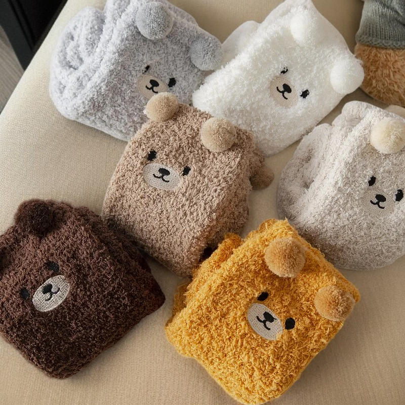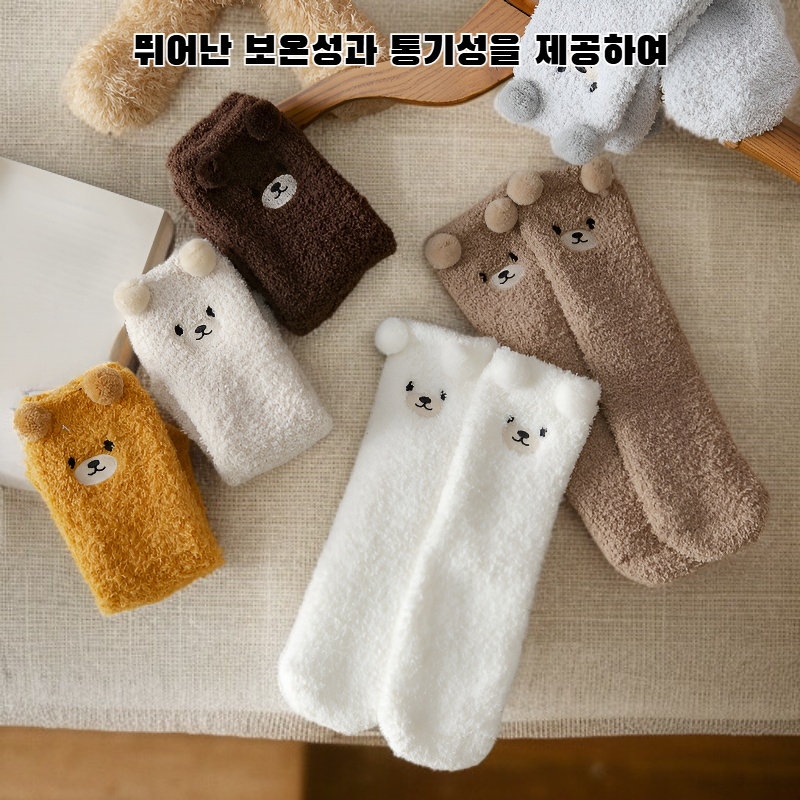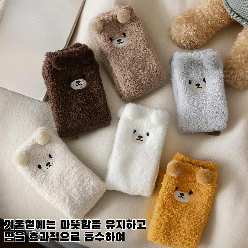 색상:화이트, 아이보리, 라이트 그레이, 라이트 브라운, 다크 브라운, 캐러멜 색상, 화이트 양말단 두 줄, 화이트 양말단 넓은 줄, 화이트 양말단 얇은 줄, 카키 양말단 줄무늬, 카키 양말단 배색, 자수 곰 색상 혼합